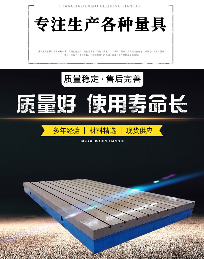 一般鑄鐵裝配平臺的使用壽命很長,鑄鐵裝配平臺只要采用正確的方法使用和保放,鑄鐵裝配平臺工作面的精度可以保持使用2年以上,鑄鐵裝配平臺精度降低時可以通過調試或刮研工藝恢復,裝配鑄鐵平臺本身的使用壽命可以達到50-100年,所以,延長鑄鐵平臺的壽命,工作質量要注意: